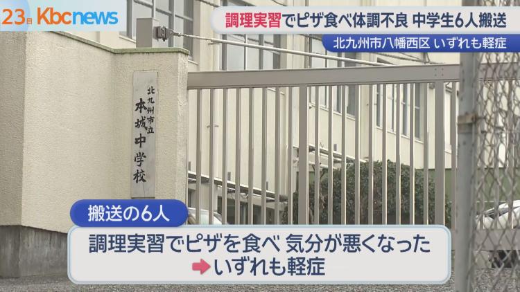 市教委学校保健課によると、3年のクラスで午後0時15分頃にピザを食べ、同1時過ぎに男女計8人が体調不良を訴え、そのうち6人が病院に救急搬送された。4人は検査で異常が認められず帰宅し、2人は経過観察となった。