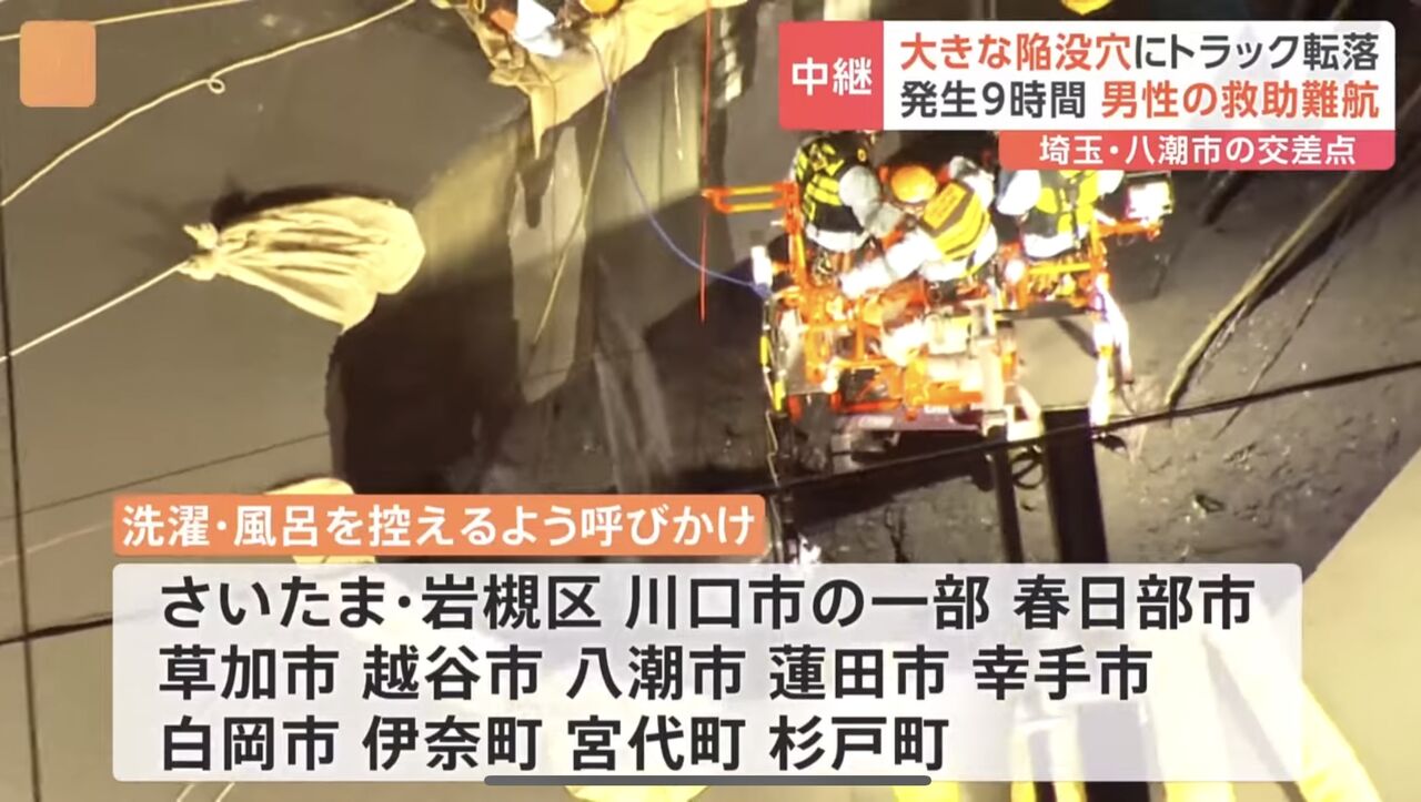 八潮の現場はガス管も破損&瓦斯漏れも発生