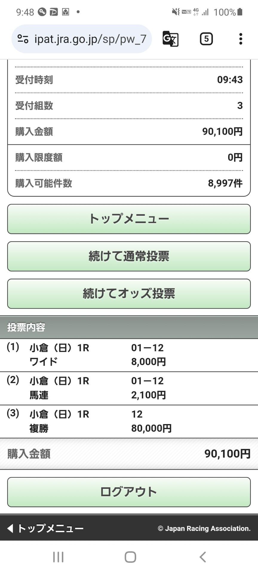 朝イチ三連複万馬券ゲット