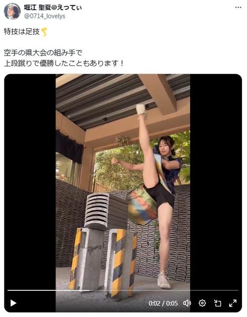 空手黒帯アナ、美脚で魅せた瓦割り4000万回再生「脚きれ〜」「可愛カッコいい」
