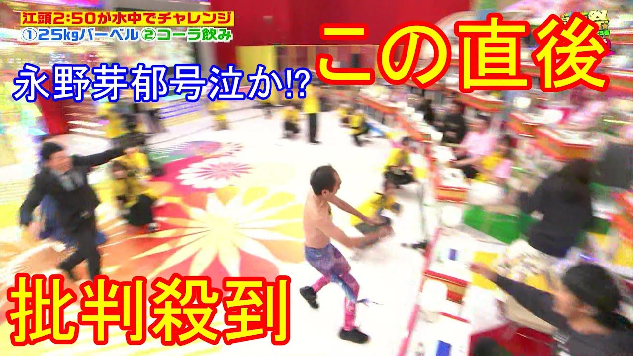 江頭は日曜劇場「キャスター」に出演する女優・永野芽郁をターゲットに。「永野~!」と叫びながらスタジオを逃げ回る永野を追い回し、スタッフから羽交い絞めにされる一幕があった。恐怖を感じた永野が涙を流す場面に、SNS上では「さすがにやりすぎ」「これぞエガちゃん!」と賛否の声が上がっていた。
